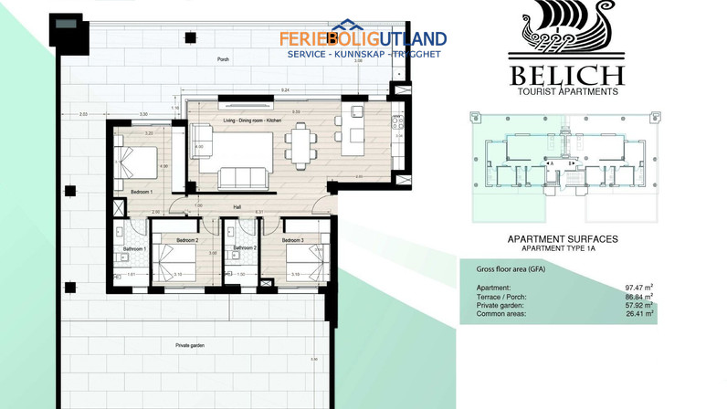 Leilighetene leveres helt innflyttingsklare, og er et ideelt valg for familier, feriegjester og investorer som ønsker en moderne bolig med høy standard og gode utleiemuligheter.